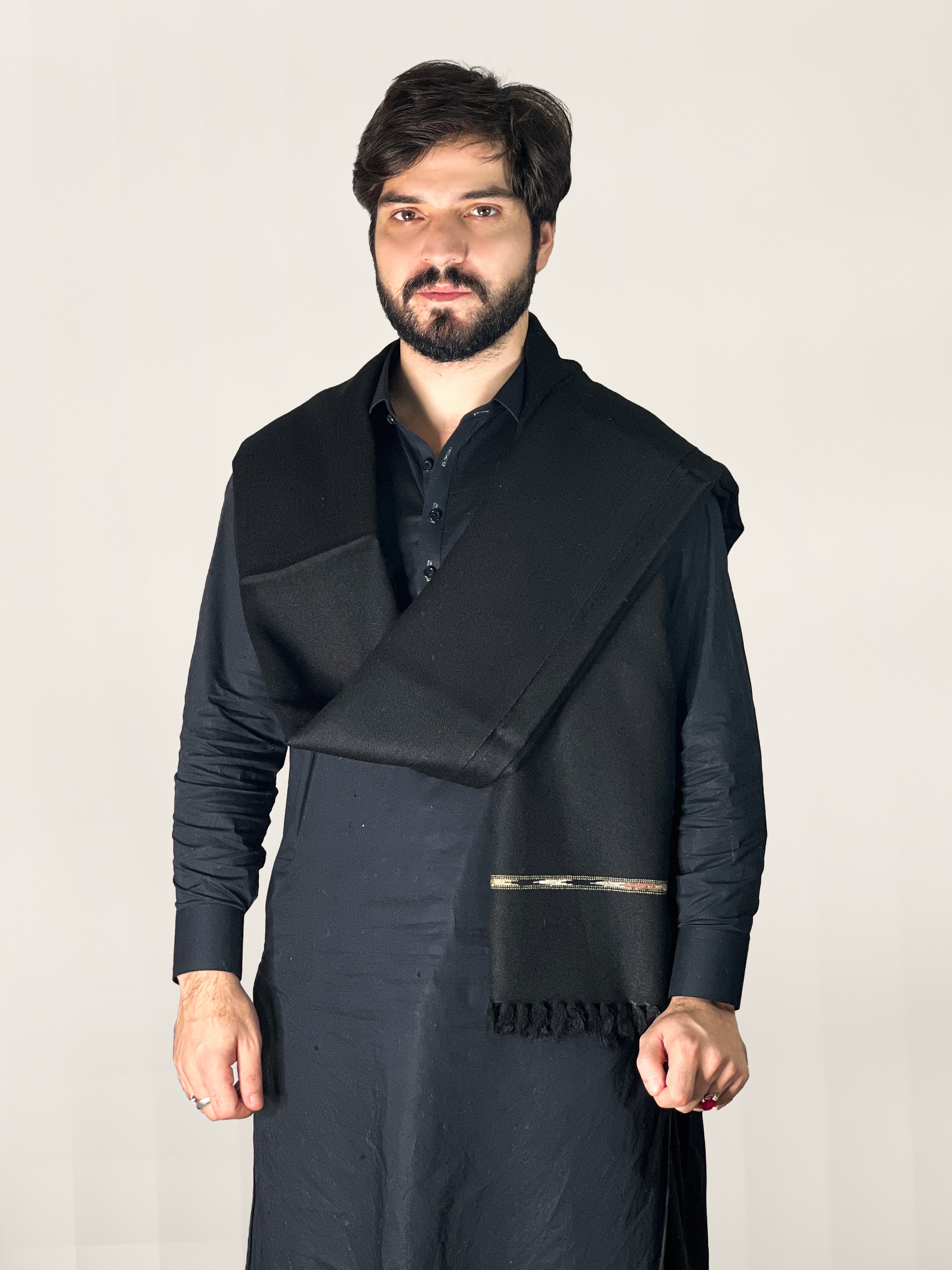 The Black Kaghani Shawl is a classic piece of Pakistani tradition, crafted with fine-quality wool that ensures warmth and comfort. Its soft texture and graceful gray shade make it to wear with both traditional events and modern outfits. Perfect for casual gatherings or formal occasions, this shawl reflects timeless style with cultural heritage.
