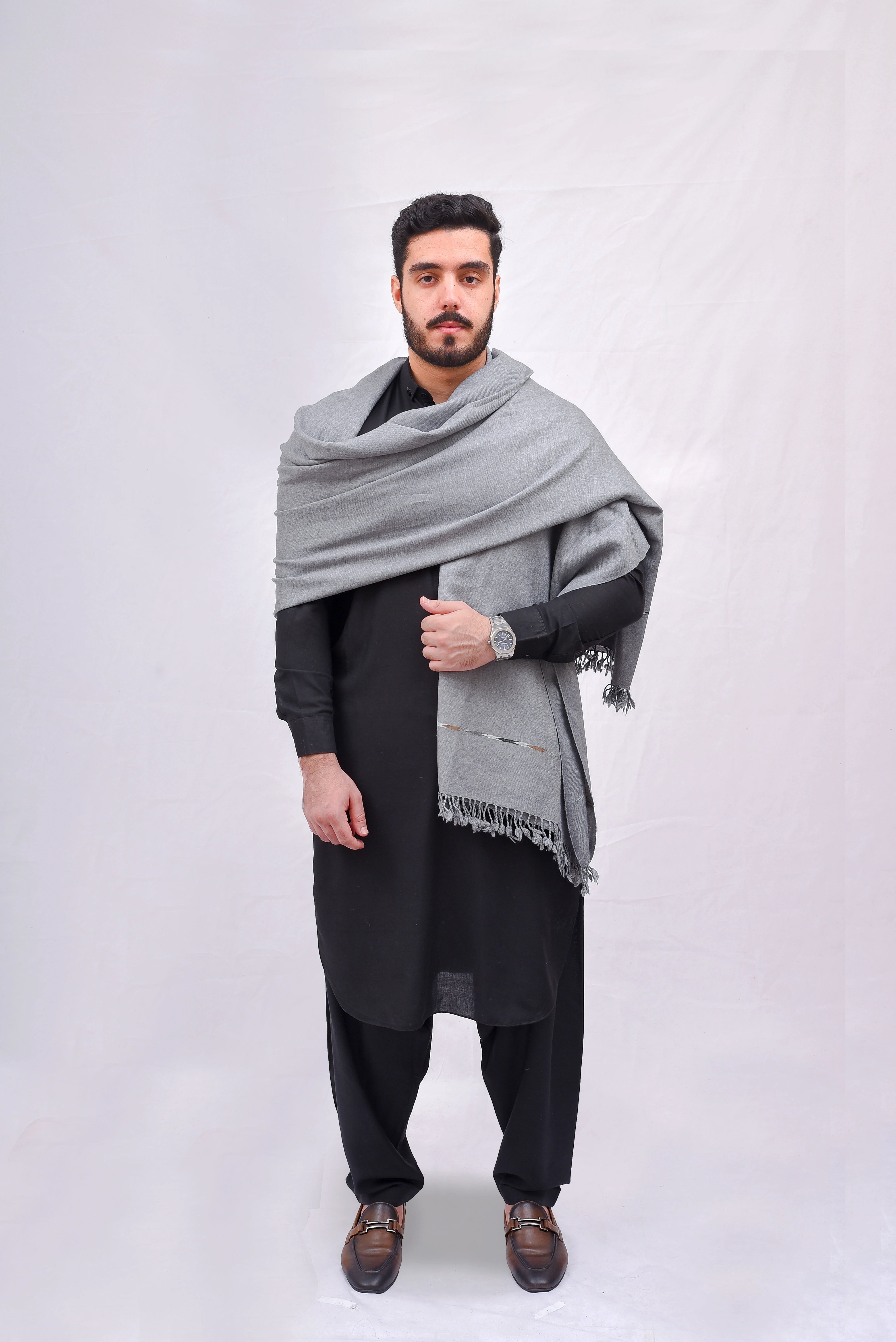 The Gray Pashmina Shawl is a classic piece of Pakistani tradition, crafted with fine-quality wool that ensures warmth and comfort. Its soft texture and graceful gray shade make it to wear with both traditional events and modern outfits. Perfect for casual gatherings or formal occasions, this shawl reflects timeless style with cultural heritage.